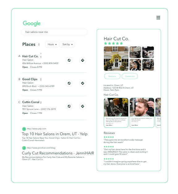 - Reviews – the heart of online reputation management. Reviews are social proof and ranking fuel for GBP and search.